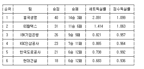 [프로배구 중간순위] 14일