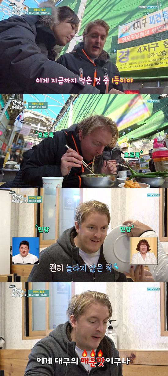 14일 방송된 MBC에브리원 '어서와 한국은 처음이지?'의 특별판 '어서와 한국살이는 처음이지?'에서는 한국살이 2년 차 미국 출신 데이비드 로, 한국살이 28년 차 핀란드 출신 레오 란타, 개그우먼 김민경이 출연했다.