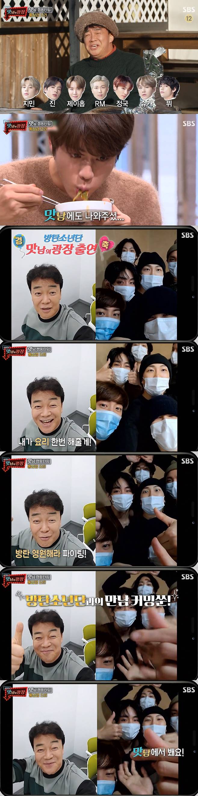 이때 백종원은 "방탄소년단 '다이나마이트' 안다"면서 "진과 제이홉이 '삼대천왕'에 나왔었다. 착하다. 음식도 좋아하고"라고 했다. 특히 백종원은 방탄소년단과 깜짝 영상통화를 시도, 방탄소년단은 "선생님이 해 주시는 음식 먹을 수 있냐"고 했고, 백종원은 "요리 한번 해주겠다"고 했다. 그러자 방탄소년단은 "오케이. '맛남'에서 봬요"라며 방탄소년단과 '맛남의 광장' 콜라보를 예고해 기대감을 높였다.