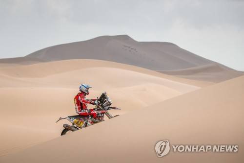 epa08937183 A handout photo made available by ASO of Oriol Mena of Spain, KTM, FN Speed - Rieju Team, in action during the 11th stage of the Dakar 2021 between Al-Ula and Yanbu, in Saudi Arabia, 14 January 2021. EPA/Antonin Vincent HANDOUT via ASO SHUTTERSTOCK OUT HANDOUT EDITORIAL USE ONLY/NO SALES/NO ARCHIVES