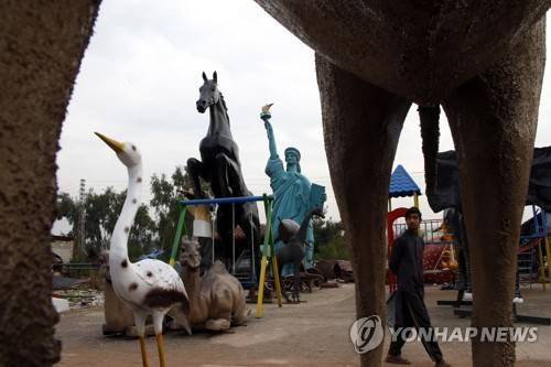 epa08937249 A view of sculptures made up of fiber glass at a workshop on the outskirts of Islamabad, Pakistan, 14 January 2021. These sculptures are sold in the market at a price range between 120 USD upto 8000 USD depending on the dimensions, quality and artwork. Mostly zoo owners, housing societies and home owners buy it to decorate their place. EPA/SOHAIL SHAHZAD