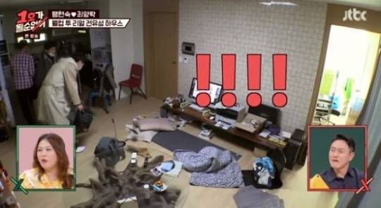팽현숙은 "홀아비 냄새가 나는 것 같다. 이렇게 어지러운 집은 처음"이라고 말해 웃음을 자아냈다.