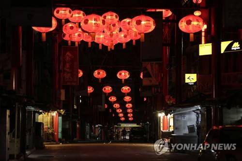 epa08937329 It is empty and quiet at Petaling Street, Kuala Lumpur's Chinatown during day two of Movement Control Order (MCO) 2.0 in Kuala Lumpur, Malaysia, 14 January 2021. Malaysia imposed a Movement Control Order (MCO) for two weeks for several states from 13 to 26 January to tackle the rising numbers of Covid-19 cases in Malaysia. EPA/AHMAD YUSNI