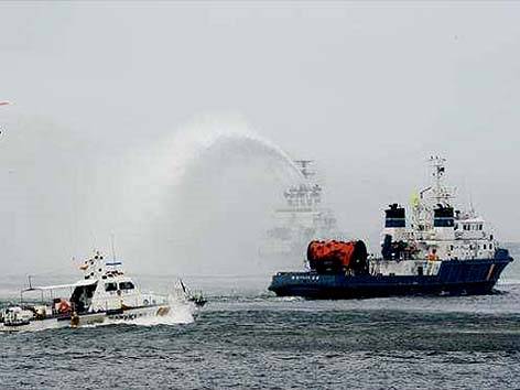 해경은 지난 10일 일본 정부의 측량선 쇼요(昭洋·3000t급)가 나타나자 조사 활동을 즉각 멈추고 퇴거할 것을 9시간 동안 요구했다.