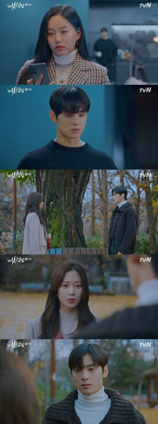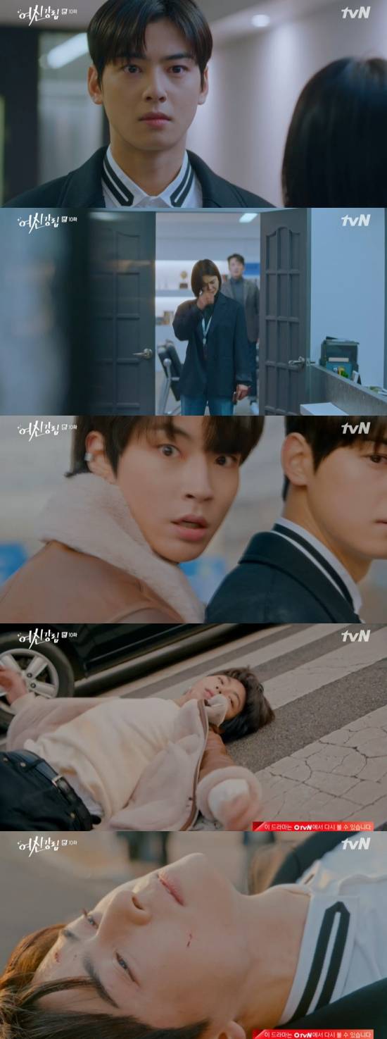 14일 방송된 tvN '여신강림' 10회에서는 이수호(차은우 분)와 한서준(황인엽)이 동시에 교통사고를 당한 모습이 그려졌다.