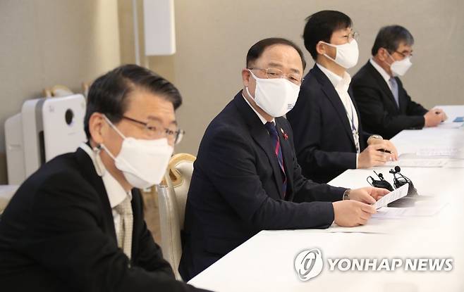 (서울=연합뉴스) 김승두 기자 = 홍남기 경제부총리 겸 기획재정부 장관이 15일 정부서울청사에서 열린 제13차 부동산시장 점검 관계장관회의를 주재하며 발언하고 있다. 2021.1.15