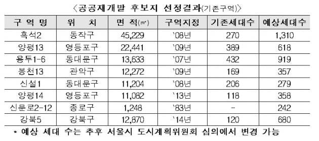 서울 8곳 공공재개발 추진.."신규 분양·공공임대 1500가구씩 공급 예상"