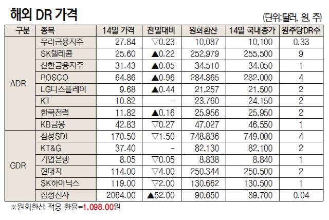 [표]해외 DR 가격(1월 14일)