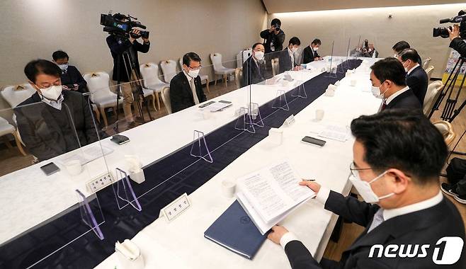 (서울=뉴스1) 송원영 기자 = 홍남기 경제부총리 겸 기획재정부 장관이 15일 서울 종로구 정부서울청사에서 열린 '제13차 부동산시장 점검 관계장관회의'에서 모두발언을 하고 있다. 2021.1.15/뉴스1