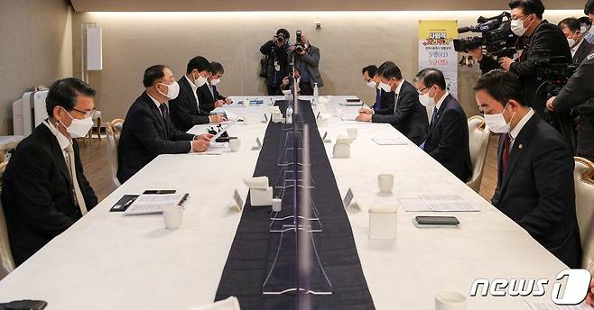 (서울=뉴스1) 송원영 기자 = 홍남기 경제부총리 겸 기획재정부 장관이 15일 서울 종로구 정부서울청사에서 열린 '제13차 부동산시장 점검 관계장관회의'에서 모두발언 하고 있다. 2021.1.15/뉴스1