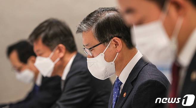 (서울=뉴스1) 송원영 기자 = 변창흠 국토교통부 장관이 15일 서울 종로구 정부서울청사에서 열린 '제13차 부동산시장 점검 관계장관회의'에 참석하고 있다. 2021.1.15/뉴스1