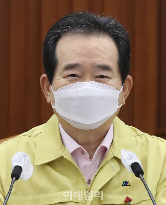 [이데일리 김태형 기자] 정세균 국무총리가 15일 오전 서울 종로구 정부서울청사에서 코로나19 대응 중앙재난안전대책본부 회의에서 모두발언을 하고 있다.