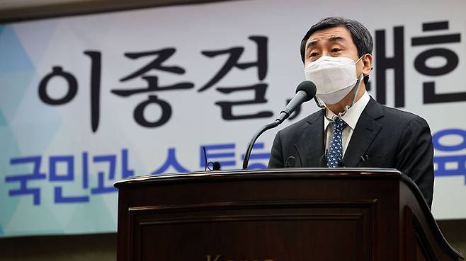 이종걸 후보는 처음엔 대한체육회장에 뜻이 없었습니다. 그러다가 장영달 우석대 명예총장이 출마 자격 시비 끝에 끝내 낙마하자 사실상 '대타'로 뒤늦게 뛰어들어 후보 등록 마감 하루 전인 12월 28일에야 출마 선언을 했습니다.