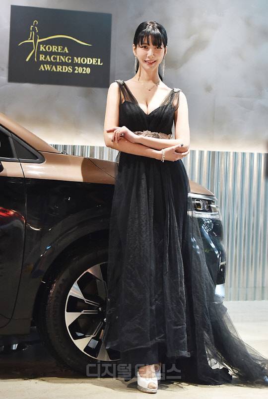 레이싱모델 반지희가 경기도 성남시 더 헤리티지에서 진행된 '2020 한국 레이싱모델 어워즈(2020 Korea Racing Model Awards)'에서 '대상'을 수상, 포즈를 취하고 있다.
