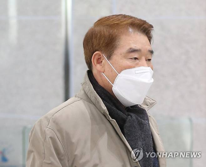 (울산=연합뉴스) 김용태 기자 = 공직선거법 위반 혐의로 재판에 넘겨진 정천석 울산 동구청장이 15일 오전 울산지법에서 직위 상실형에 해당하는 벌금 500만원을 선고받은 후 법원을 떠나고 있다. 2021.1.15