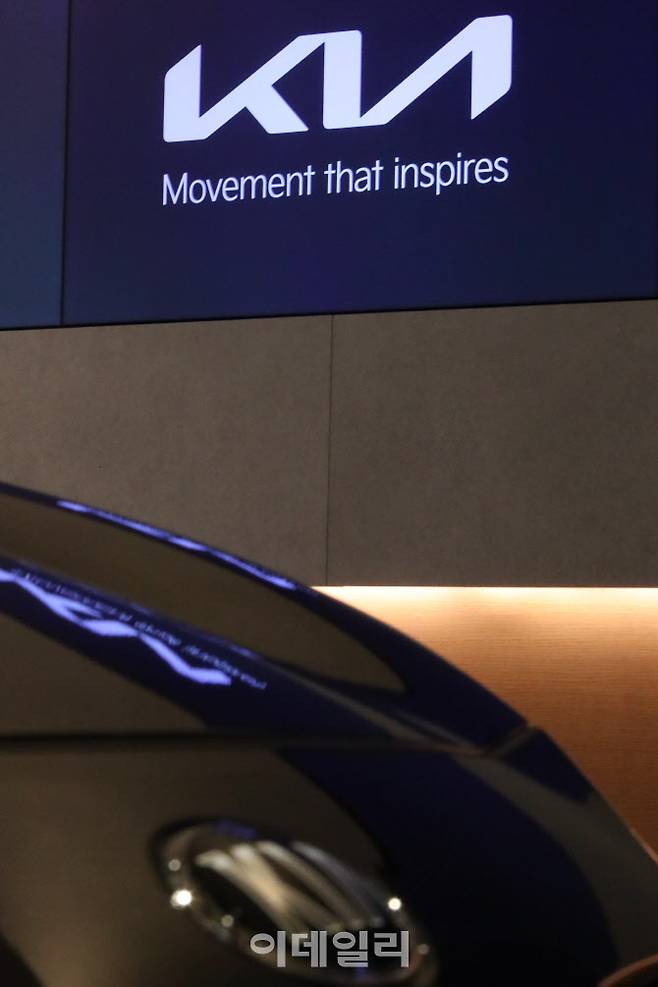 [이데일리 이영훈 기자] 기아가 '뉴 기아 브랜드 쇼케이스'를 통해 미래 전략을 발표한 15일 서울 강남구 압구정 기아 비트360에서 새로 바뀐 로고가 화면에 보이고 있다.