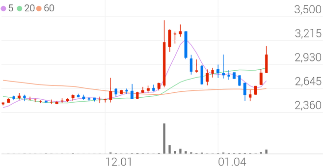 전일 대비 13.07% 상승한 3,200원에 거래되고 있다.
