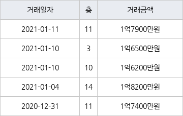 지난 2021년 1월 11일 같은 면적형인 11층 물건이 1억7900만원에 실거래된 것과 비교해 300만원 높은 가격이다.
