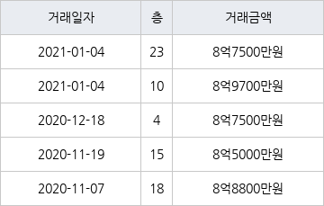 지난 2021년 1월 4일 같은 면적형인 23층 물건이 8억7500만원에 실거래된 것과 비교해 2200만원 높은 가격이다.