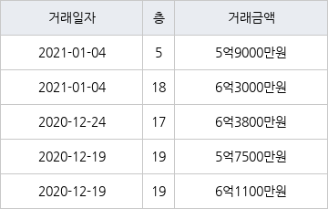 같은 기간 집계된 전용면적별 평균 실거래가격을 보면 △59㎡ 4억31만원 △75㎡ 4억5781만원 △83㎡ 4억5330만원 △84㎡ 4억8431만원 △115㎡ 5억8165만원 △133㎡ 6억4614만원 등이다.