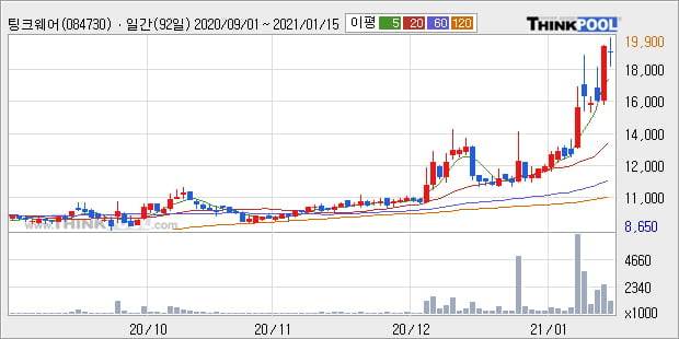 '팅크웨어' 52주 신고가 경신, 전일 종가 기준 PER 34.8배, PBR 1.3배, 업종대비 저PER