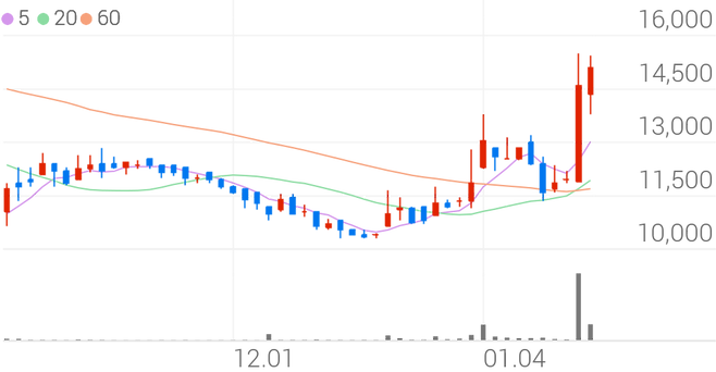 전일 대비 7.88% 상승한 15,750원에 거래되고 있다.