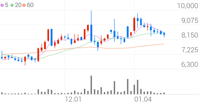 전일 대비 2.11% 상승한 8,700원에 거래되고 있다.