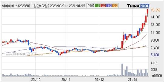 씨아이에스, 장시작 후 꾸준히 올라 +12.23%.. 최근 주가 상승흐름 유지