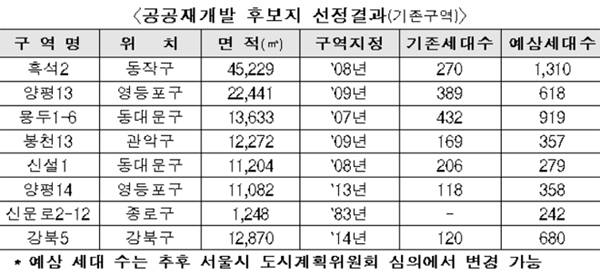 선정위원회는 이번에 선정되지 않은 4곳도 공공재개발 사업의 필요성은 인정되나 구역별 현안이 있어 이를 검토 후 차기 선정위원회를 통해 선정여부를 재논의하기로 하고 보류결정했다.
