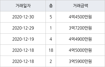 국토교통부 실거래가 공개시스템에 따르면 지난 2020년 12월 30일 경기도 수원시 영통구 영통동 영통벽적골두산한신 5층 전용면적 59㎡형이 4억4500만원에 거래됐다. 지난 2020년 12월 30일 같은 면적형인 5층 물건이 4억4500만원에 실거래된 것과 비교해 같은 가격이다.