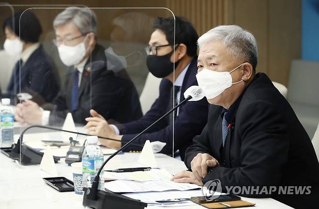 (서울=연합뉴스) 진연수 기자 = 김동만 산업인력공단 이사장이 15일 오후 서울 중구 대한상공회의소에서 열린 모바일 국가자격 서비스 업무협약식에서 인사말을 하고 있다. 2021.1.15