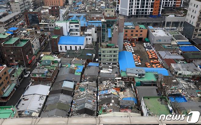 (서울=뉴스1) 구윤성 기자 = 서울 양평13구역과 흑석2구역, 용두1-6구역 등 8곳에서 공공재개발 사업이 추진된다. 국토교통부와 서울시가 선정해 15일 발표한 공공재개발 시범 사업지는 동작구 흑석2, 영등포구 양평13·14, 동대문구 용두1-6·신설1, 관악구 봉천13, 종로구 신문로2-12, 강북구 강북5 등이다. 이들 지역은 역세권에 있는 기존 정비구역으로, 앞으로 약 4700가구의 주택공급이 이뤄질 예정이다. 사진은 이날 서울 영등포구 양평14구역의 모습. 2021.1.15/뉴스1