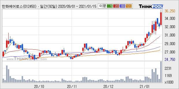 '한화에어로스페이스' 52주 신고가 경신, 전일 종가 기준 PER 15.8배, PBR 0.6배, 업종대비 저PER
