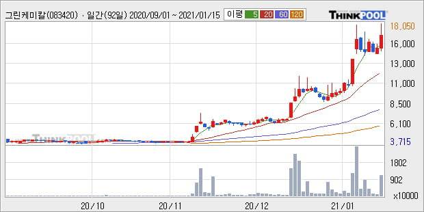'그린케미칼' 52주 신고가 경신, 단기·중기 이평선 정배열로 상승세