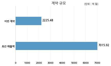 계약규모는 2225억원으로 최근 매출액인 7015억원 대비 31.72% 수준이다.