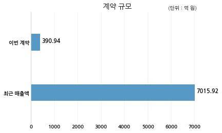 계약규모는 390억원으로 최근 매출액인 7015억원 대비 5.57% 수준이다.