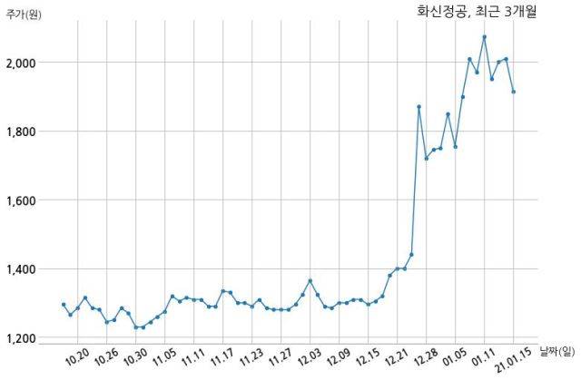 한편, 화신정공은 장 마감 이후 해당 기업공시를 발표했으며 오늘 종가가 1,915원, 거래량은 2,248,526주로, 직전 거래일 대비 95원(-4.73%) 하락했다.