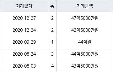 지난 2020년 12월 27일 같은 면적형인 2층 물건이 47억5000만원에 실거래된 것과 비교해 같은 가격이다.
