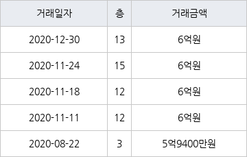 [이 기사는 조선비즈와 아티웰스가 공동으로 개발해 서비스하는 로봇 기사입니다.]국토교통부 실거래가 공개시스템에 따르면 지난 2020년 12월 30일 서울특별시 양천구 신정동 신트리4단지 13층 전용면적 48㎡형이 6억원에 거래됐다.