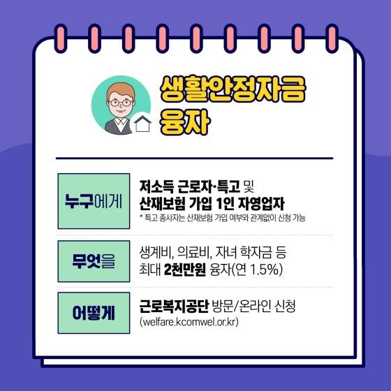 ▷ 무엇을? 생계비, 의료비, 자녀 학자금 등 최대 2천만원 융자(연 1.5%)