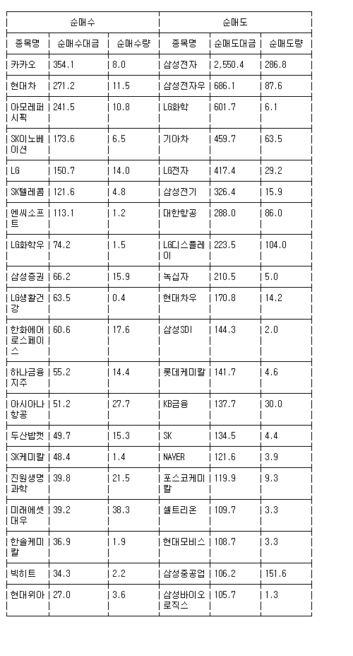 [표] 거래소 외국인 순매수도 상위종목(15일)