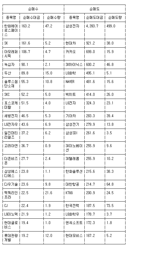 [표] 거래소 기관 순매수도 상위종목(15일)