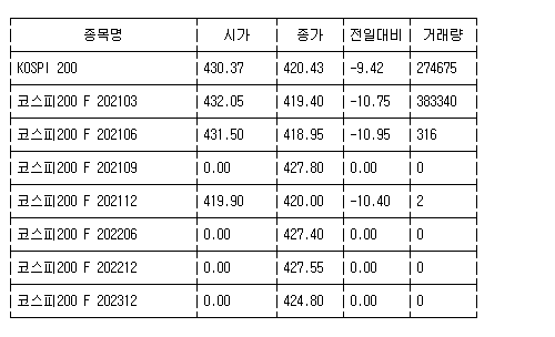 [표] 코스피 지수선물·옵션 시세표(15일)-1