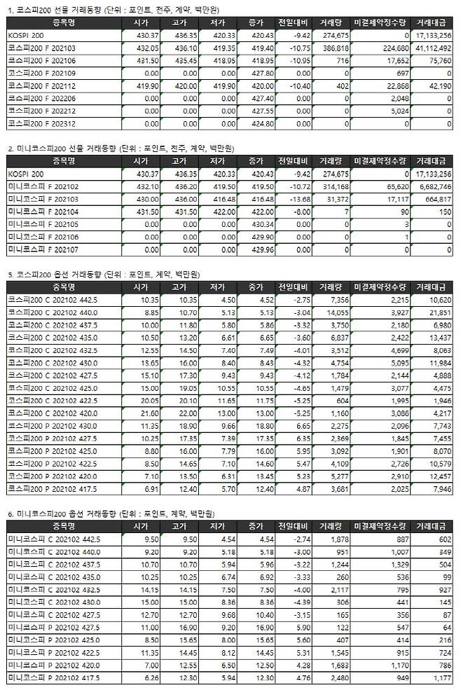 [표]거래소 주가지수선물·옵션시세표(1/15)
