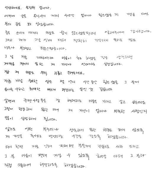 문 씨도 소속사를 통해 "그동안 주변인들을 충분히 배려하지 못했던 것에 반성하고 있다. 모든 상황이 내가 스스로 자초한 일임을 안다. 천천히 자신을 돌아보는 시간을 갖겠다"고 말했다. 그는 자필 사과문도 공개했다.