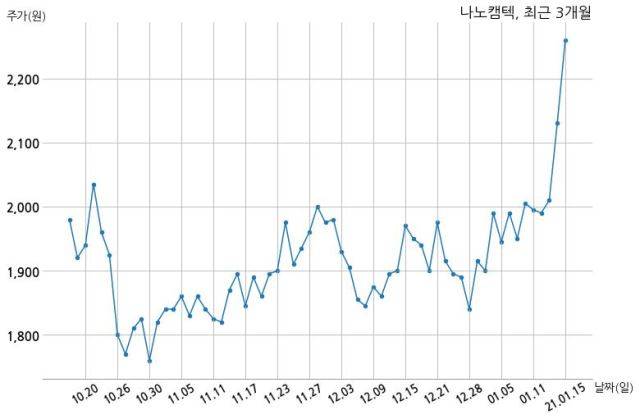 한편, 나노캠텍은 장 마감 이후 해당 기업공시를 발표했으며 오늘 종가가 2,260원, 거래량은 3,882,928주로, 직전 거래일 대비 130원(+6.1%) 상승했다.