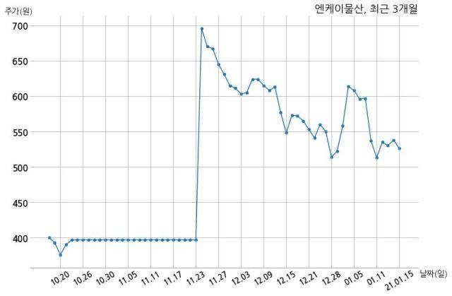 한편, 엔케이물산은 장 마감 이후 해당 기업공시를 발표했으며 오늘 종가가 526원, 거래량은 1,230,208주로, 직전 거래일 대비 12원(-2.23%) 하락했다.