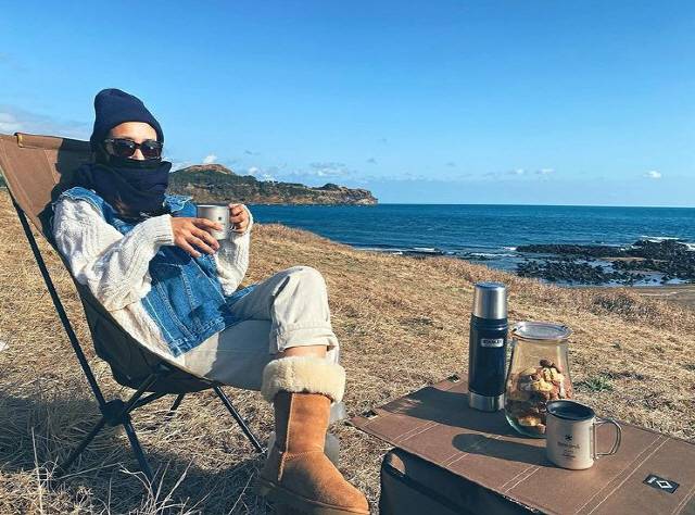 공개된 사진 속 진재영은 아름다운 제주도 바닷가를 바라보며 커피를 마시고 있는 모습이다. 그림같은 바다를 배경으로 여유로운 일상을 즐기는 진재영의 모습이 부러움을 자아낸다.