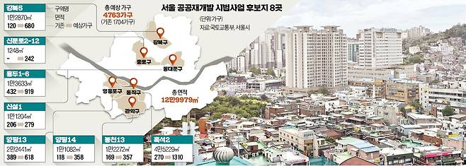 정부는 15일 공공재개발을 신청한 구역 중 이미 정비계획안에 마련돼 있어 심사 등이 쉬운 기존 정비구역 12곳을 검토해 8곳을 선정했다.