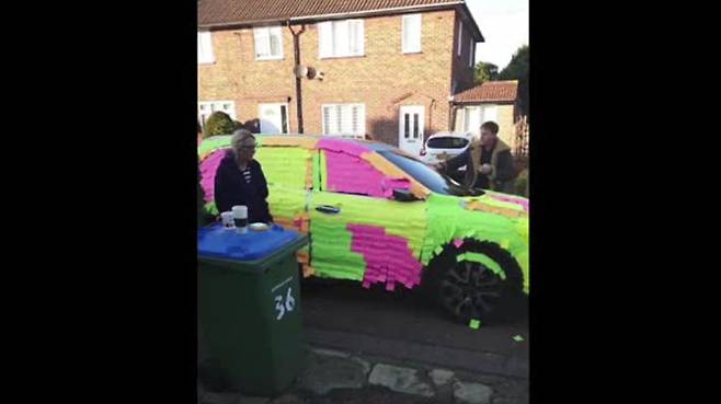 이 사람이 이렇게 엄청난 양의 포스트잇을 붙이고 있는 이유는 바로 차 주인의 예의 없는 행동 때문이었는데요.